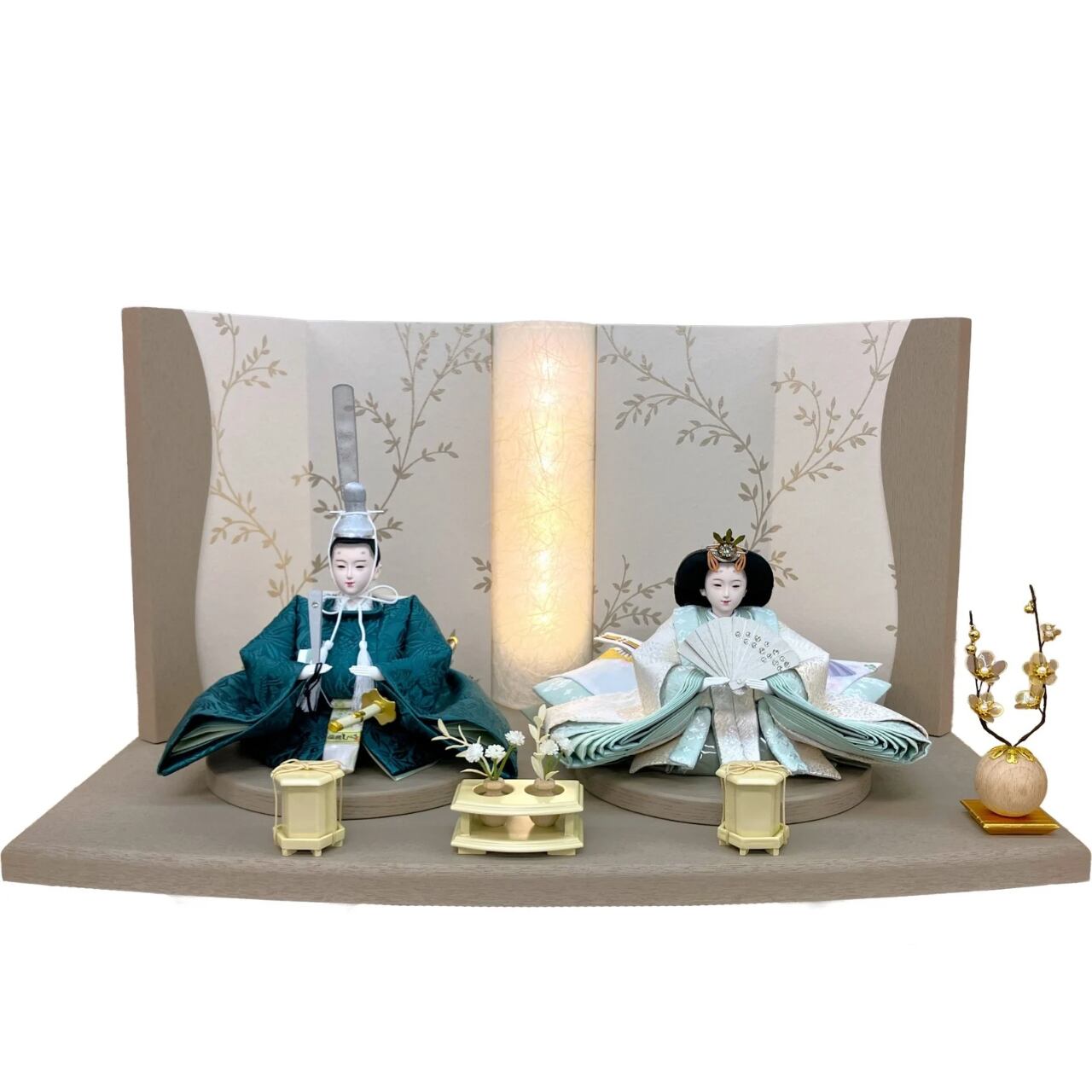 灯のともるモカ色の台・屏風と相まって、神秘的なカラーリングに仕上がりました。