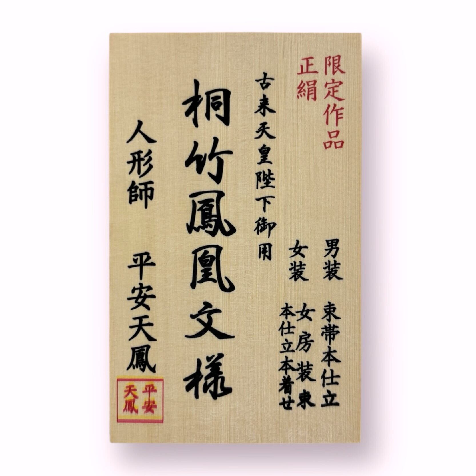 ・人形の衣装につきまして、同一の織物を使用しておりますが、柄の位置等、写真と若干異なる場合がございます。