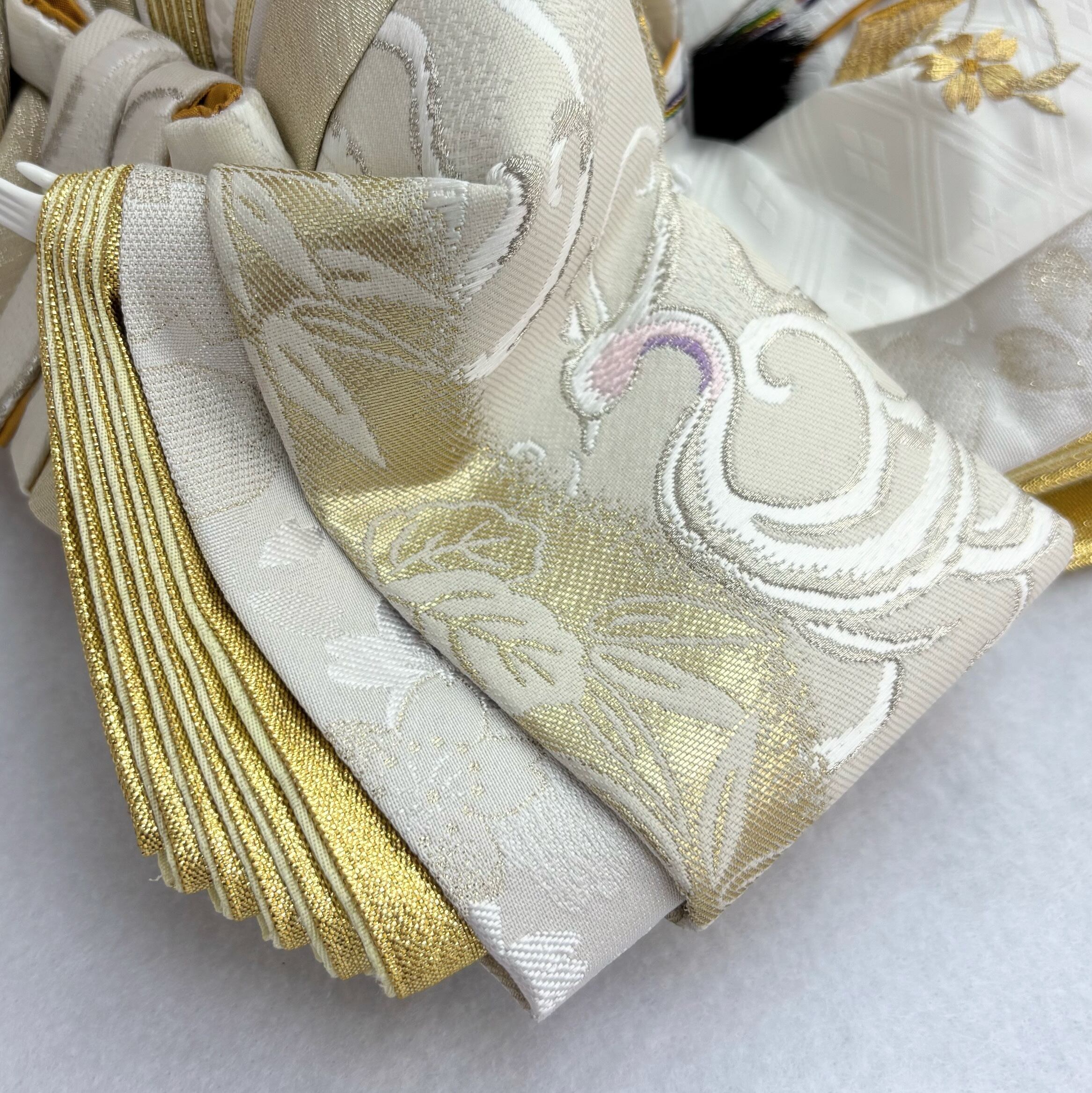 衣装には皇室で代々着用された「瑞鳥文様」のローブデコルテをモチーフとした京都 西陣袋帯を使用。