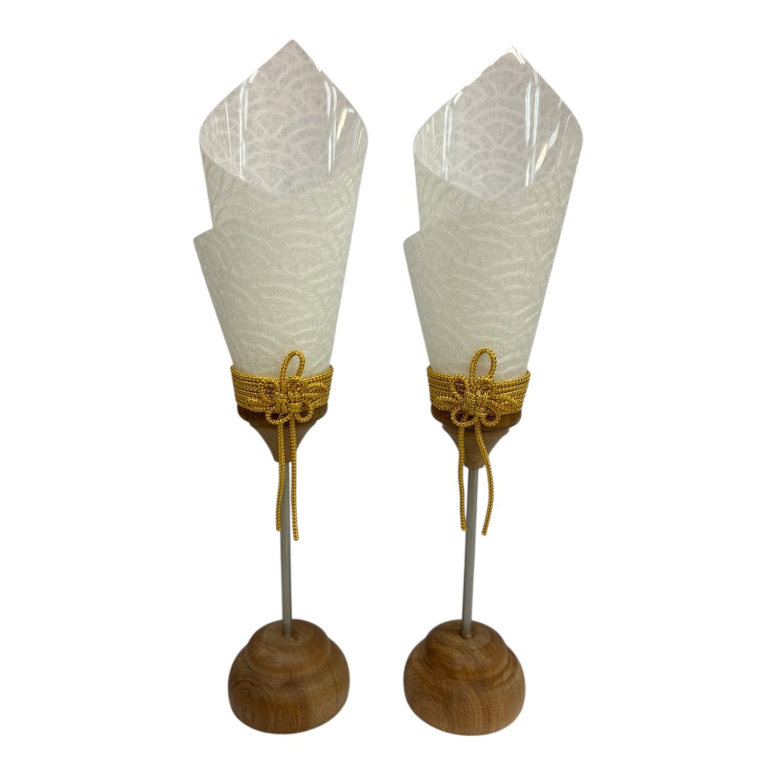 ・台・屏風、ガラスケースの枠等には天然の木材を使用しているため、木目や節が生じておりますが不良品ではございません。