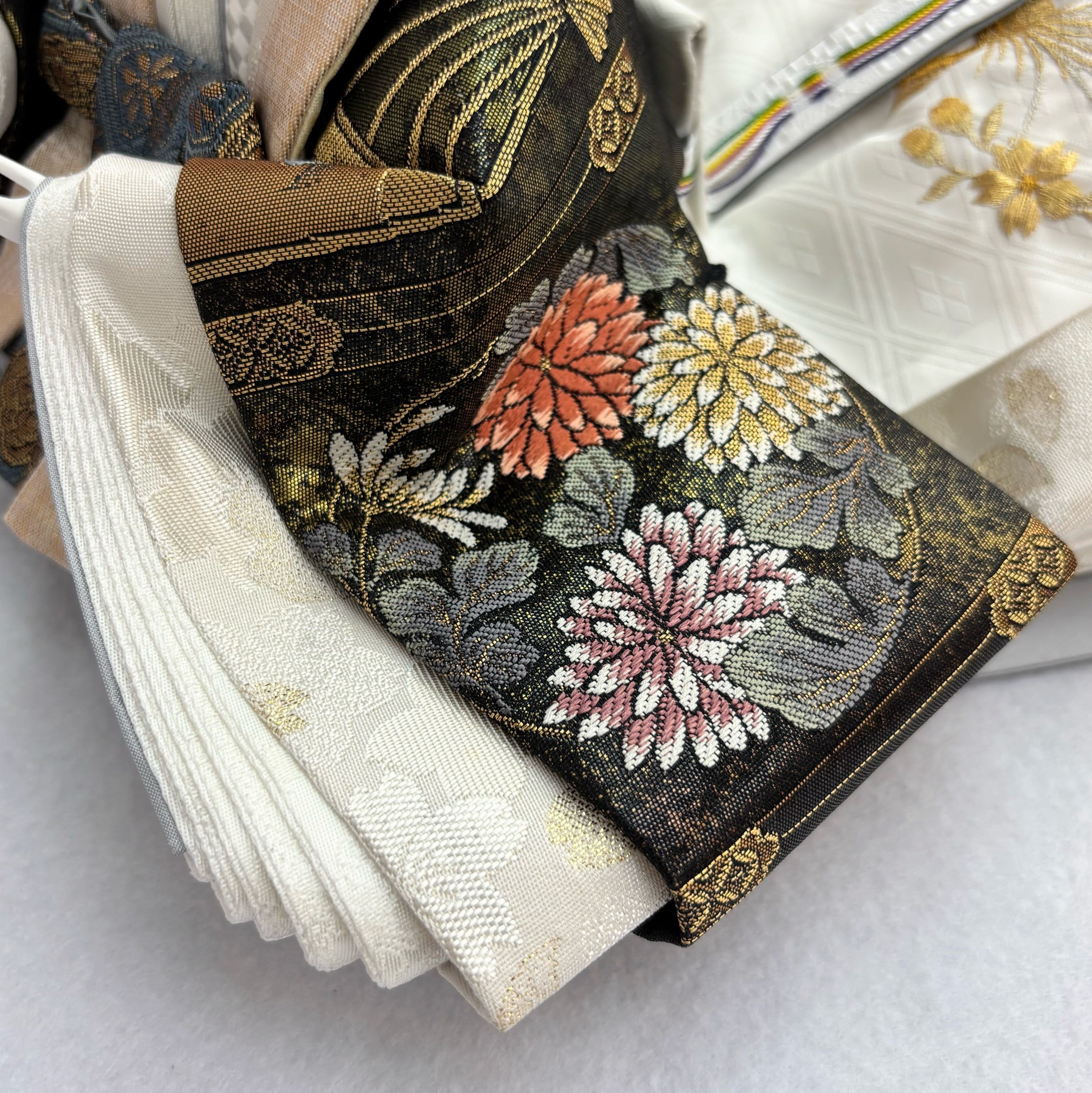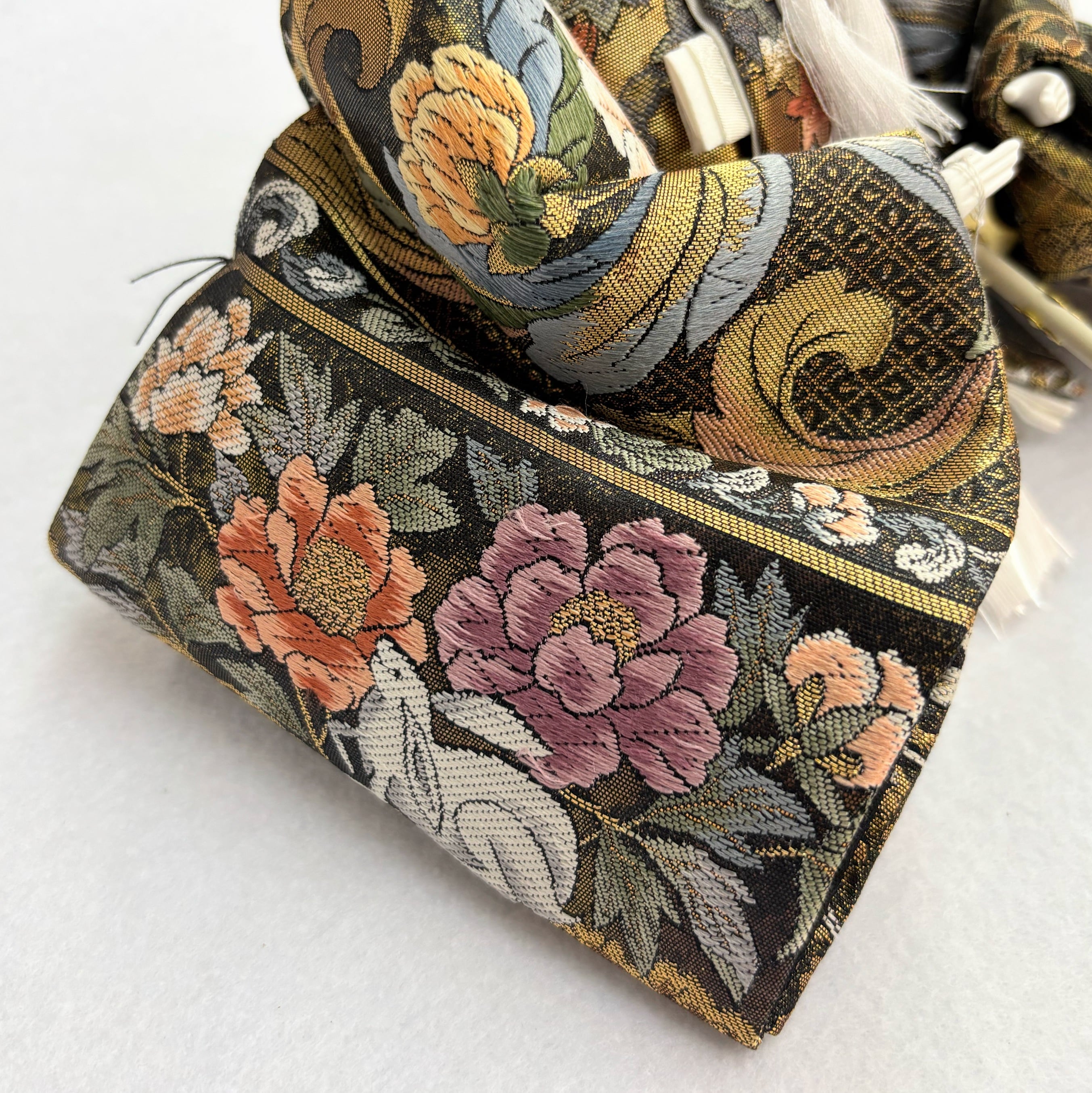 衣装には吉祥文様が織り出された京都 西陣袋帯を使用。