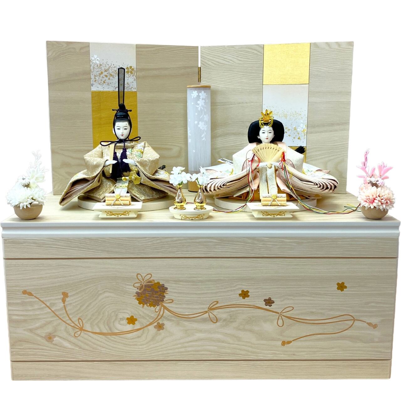 ・台・屏風、ガラスケースの枠等には天然の木材を使用しているため、木目や節が生じておりますが不良品ではございません。
