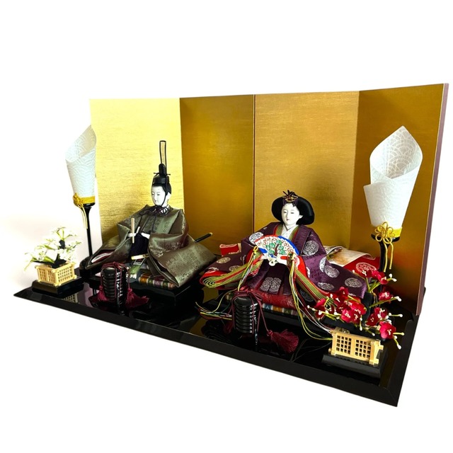 男雛の衣装は古代、天皇陛下の御束帯であった青色御袍。